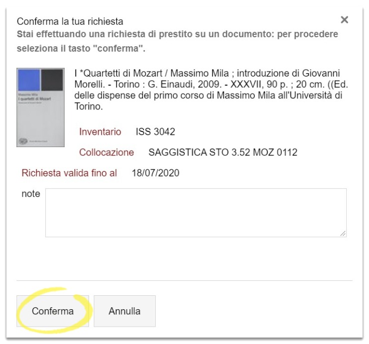 3. Clicca sulla tab Lo trovi in ► Richiesta di prestito ► Conferma: