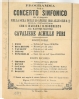 | Note | Descrizione basata su di un esemplare rifilato nel margine superiore; dimensioni stimate desunte dalla piegatura: 26 cm Verso bianco Contiene il programma del concerto (parte 1.: opere di Peri, Boccherini, Taubert, Foroni, Ponchielli; parte 2.: opere di Thomas, Haydn, Gounod, Verdi, Rossini) In calce: Il concerto sarà eseguito da settanta Professori e diretto dall'Egregio Maestro Signor Pio Ferrari di Parma (la musica fu gratuitamente concessa ... dalle onorevoli Case editrici Ricordi, Lucca e Sonzogno di Milano). |